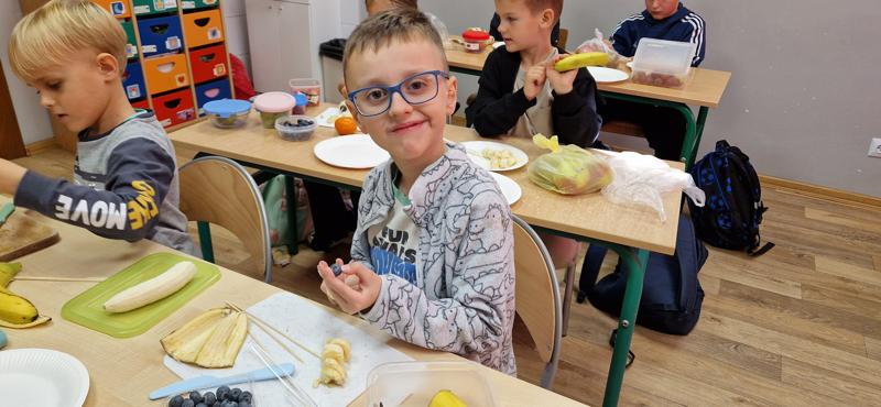 Kolorowe owocowe szaszłyki w klasie 1 🍎🍌🍇