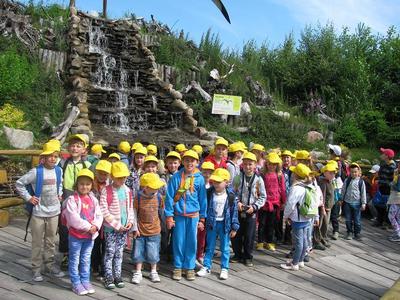 W dniu 12 czerwca 2014 roku dzieci z oddziału przedszkolnego i uczniowie z klas I – III przenieśli się w przeszłość – do epoki kredy. W Parku Dinozaurów w Łebie mogli spotkać trójwymiarowe gady naturalnej wielkości oraz mieli okazję przeżyć niezapomniane przygody. Podczas spaceru ścieżkami, mostami wśród trzcin, kładkami nad stawami i dróżkami leśnymi dzieci poznały największe gady, jakie żyły na Ziemi, w tym Seismosaurusa – 45 m długości i jedynego w Polsce Brachiosaurusa – 13 m wysokości. W Parku spotkały żywe zwierzęta, które mieszkają w mini zoo. Były znane dzieciom koniki, króliki, owieczki, kózki oraz zwierzęta egzotyczne – kangur, antylopy, muflony, krówki zebu. Kolejną atrakcją była przejażdżka bajkową Dinusiową Kolejką znajdującą się przy największych dinozaurach. Dzieci chętnie uczestniczyły w Pirackich potyczkach z Jackiem Sparrowem, podczas których wykonywali różne konkurencje. Na koniec zabawy z piratami każdy jej uczestnik otrzymał piracki tatuaż. Przerwa na obiad pozwoliła na zregenerowanie sił do dalszej wędrówki. W trakcie Dinazaurowego rzemiosła maluchy wykonały własnoręcznie gliniane dinozaury, które następnie ozdobiły według własnych pomysłów. W kuźni – skansenie (stara chata z XVI wieku) dzieci oglądały między innymi piec chlebowy. Duże emocje towarzyszyły wszystkim podczas pobytu w Zamku Strachów, gdzie przejście trasą pomiędzy postaciami widzianymi w 3D okazało się niesamowitym przeżyciem. Pomimo zmęczenia zwiedzaniem Parku dzieci rozpierała energia podczas zabaw na placu zabaw. Niestety musieliśmy wrócić do XXI wieku, zostawiając dinozaurowy świat, a zabierając niezapomniane wrażenia.