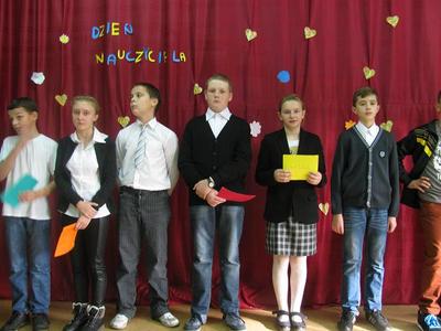 Z okazji Dnia Edukacji Narodowej uczniowie klasy V przygotowali dla nauczycieli i pracowników szkoły niespodziankę. Wiersze, których słowa były podziękowaniem za trud pracy, były pięknym prezentem. Przedstawione skecze ukazały w zabawny sposób problemy pracy nauczycieli.