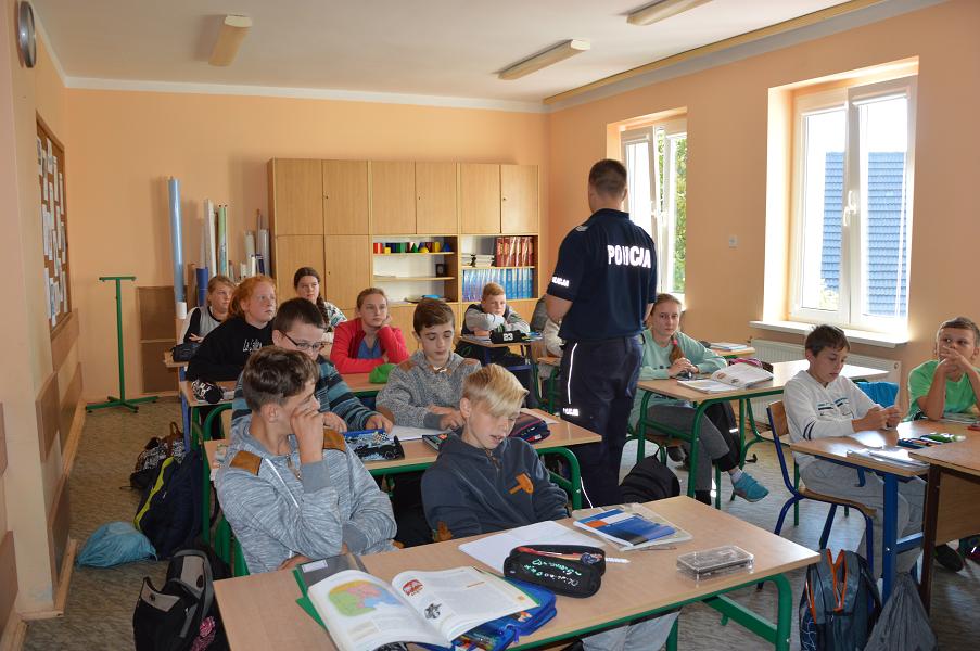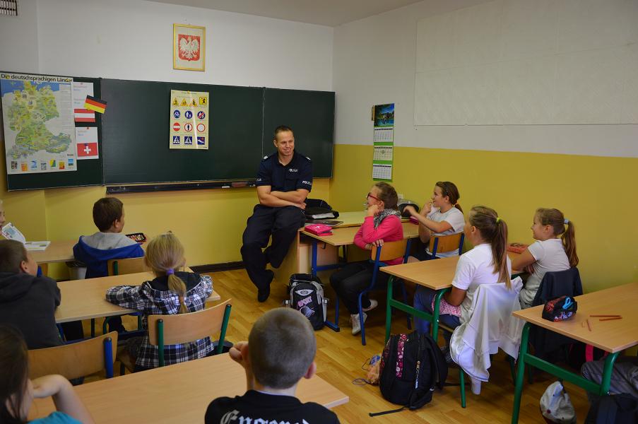 Nie ma nic cenniejszego niż zdrowie i życie. Dlatego w naszej szkole odbyły się spotkania z policjantem dotyczące bezpieczeństwa. Policjant z Komendy Powiatowej Policji w Sławnie sierż. szt. Maciej Świętosławski przeprowadził pogadanki z dziećmi przedszkolnymi oraz uczniami każdej z klas. Tematem rozmów było przede wszystkim bezpieczeństwo w ruchu drogowym, a także bezpieczeństwo w szkole, na podwórku i w sieci. Oczywiście nie odbyło się bez trudnych pytań skierowanych do pana policjanta, na które chętnie odpowiadał.