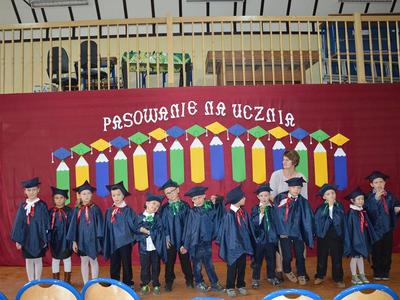 Data 20 października 2015 roku dla najmłodszych uczniów naszej szkoły będzie niewątpliwie jedną z ważniejszych dat. Tego dnia pierwszoklasiści mieli swoje święto – Pasowanie na ucznia. Uroczystość, na którą przybyli rodzice i najbliżsi, uczniowie szkoły oraz zaproszeni goście odbyła się na sali wiejskiej w Bobrowicach. Na początku zebranych powitała pani dyrektor, która życzyła uczniom wielu sukcesów w nauce oraz tego, aby w szkole zawsze czuli dobrze. Pierwszaki oraz wszyscy zgromadzeni udali się do Krainy Szkołolandii, gdzie rządzi Król Kredko wraz ze swoją małżonką. To właśnie przed Królewskim Majestatem mali uczniowie musieli wykazać się umiejętnościami, które już zdobyli w szkole. Była próba recytacji, próba śpiewu, odgadywanie zagadek i rozwiązywanie zadań matematycznych. Pierwszaki przyszły wszelkie zadania pomyślnie i mogli złożyć na sztandar szkoły akt ślubowania. Następnie Pani dyrektor każdego pasowała na ucznia przy pomocy ogromnego klucza, który otwiera drzwi do wiedzy, nowych umiejętności i wiadomości. Każdy pierwszak złożył w kronice podpis, odciskając swój odcisk palca. Na zakończenie uroczystości nastąpiło wręczanie prezentów od przybyłych gości oraz od rodziców. Po wielu emocjach na maluchy czekały niespodzianki przygotowane przez rodziców - poczęstunek, którego wielką atrakcją była czekoladowa fontanna oraz pokaz powstawania balonowych postaci, które dzieci otrzymały na pamiątkę.