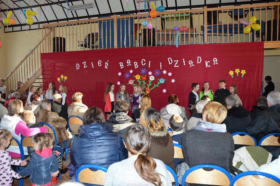 Życzenia zdrowia, stu lat życia i większej emerytury usłyszeli dziadkowie i babcie, którzy przybyli na swoje święto. W świetlicy wiejskiej na zaproszonych gości oczekiwały wnuki i wnuczęta – uczniowie i dzieci z oddziały przedszkolnego naszej szkoły. Oprócz życzeń dziadkowie usłyszeli wiersze i piosenki, obejrzeli inscenizacje oraz taniec w wykonaniu najmłodszych. Po występie dzieci wręczyły przygotowane prezenty, a Rada Rodziców zaprosiła na poczęstunek.