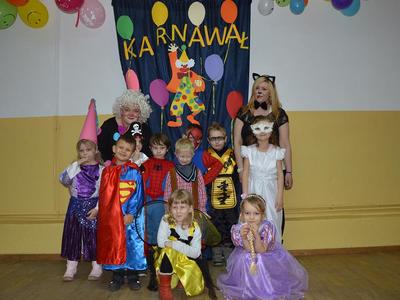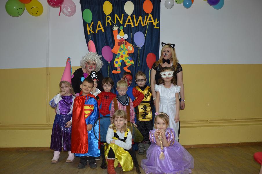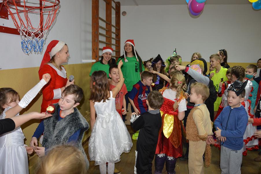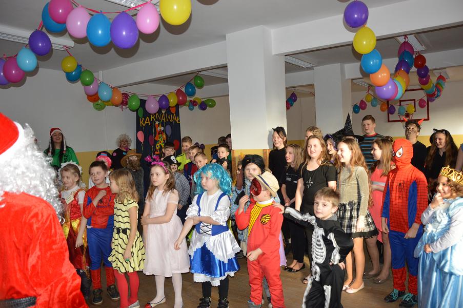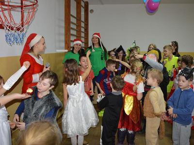 Po raz kolejny w naszej szkole pojawiły się niecodzienne postacie. Tego dnia każdy uczeń i każdy przedszkolak zmienia się w tego , w kogo tylko zechce. Taką możliwość daje czas karnawału i zabawa przebierańców, która tradycyjnie ma miejsce ostatniego dnia przed feriami zimowymi. Dzieci zostały przywitane przez Mikołaja i jego pomocnice, czyli przez uczennice Zespołu Szkół Agrotechnicznych w Sławnie. Dziewczęta przeprowadziły wśród uczniów liczne konkursy z nagrodami oraz bawiły się z dziećmi. Podczas zabawy zostali wybrani dwaj królowie i dwie królowe. Zostali nimi Hubert Kosikowski, Gracjan Jasik, Aleksandra Wita i Joanna Małyszko. Najlepsze stroje zostały uhonorowane nagrodami. Na zakończenie zabawy Mikołaj ze swoimi pomocnicami rozdał każdemu dziecku paczkę ufundowaną przez Radę Rodziców.