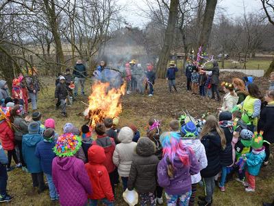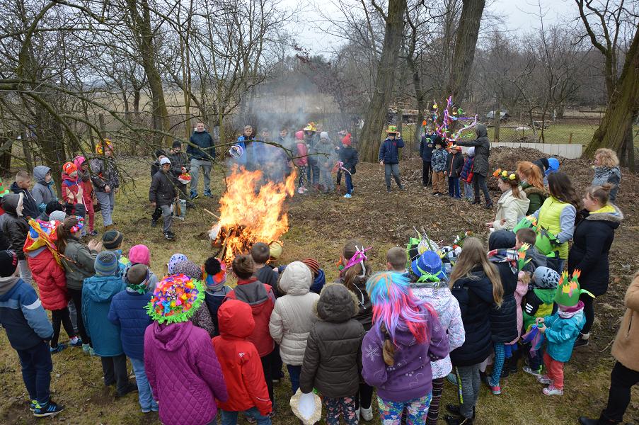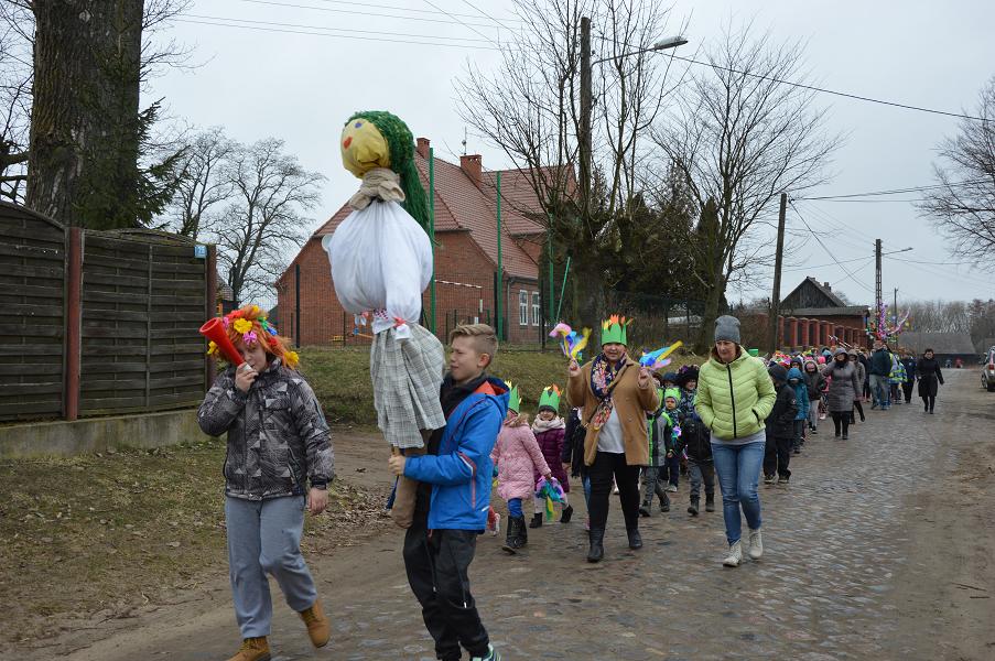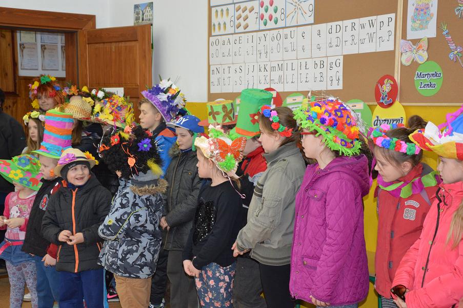 Uczniowie szkoły wraz z dziećmi z oddziału przedszkolnego w dniu 21 marca, zgodnie z tradycją, pożegnały Zimę i przywitały Wiosnę. Dzień ten był pełen atrakcji. Na początku odbył się konkurs na wiosenne nakrycie głowy. Komisja nie mogła się zdecydować na wybór najładniejszych nakryć, ponieważ wszystkie były ciekawe, pomysłowe i kolorowe. Po burzliwych obradach, jury pierwsze miejsce przyznało Klaudii Rosie (kl. IV), drugie miejsce przypadło Magdzie Szymańskiej (oddział przedszkolny), a trzecie miejsce zdobyło nakrycie Nikoli Kryściak (kl. IV). Wyróżnienia otrzymali: Mirek Jakubowski (kl. V), Julia Poborska (kl. VI) oraz Lena Szeffler (kl. I). Następnie odbył się konkurs mini playback, w którym bezkonkurencyjne okazały się siostry Szymańskie – Ola (kl. II) i Magda (oddział przedszkolny). Wszyscy uczniowie oraz przedszkolaki udali się w przemarsz barwnym korowodem po wiosce. Na czele pochodu szli uczniowie najstarszej klasy z Marzanną, a całość zamykali uczniowie klasy III z wiosennym symbolem – Gaikiem. Po powrocie do szkoły nastąpiło spalenie Zimy – Marzanny. Na zakończenie na dzieci czekały kiełbaski z grilla, które wszyscy z apetytem zjedli.