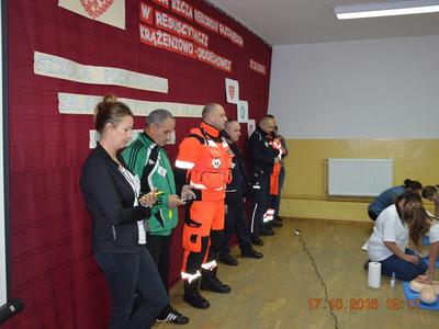 Przed próbą, do grupy naszych uczniów dołączyli uczniowie Zespołu Szkół Agrotechnicznych w Sławnie należący do Szkolnej Drużyny Medycznej, którzy wspólnie z nami bili rekord. Na miejscu pojawiły się również osoby, bez których niemożliwe byłoby przeprowadzenie próby. Przybyli do nas także ratownicy medyczni, policjanci, osoby mierzące czas oraz osoby obsługujące sprzęt audiowizualny.