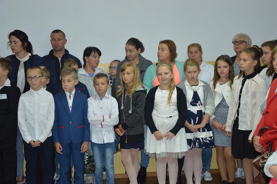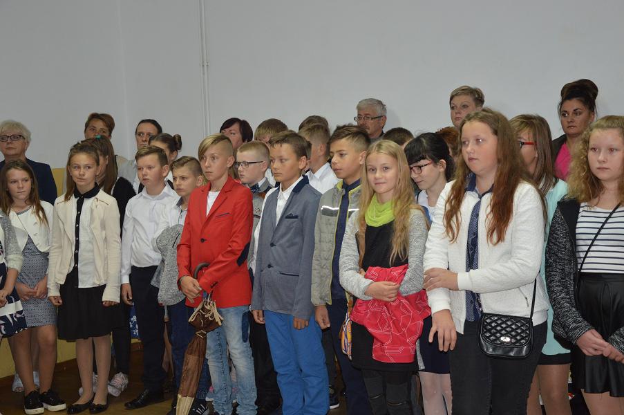 4 września na sali gimnastycznej odbyła się uroczystość rozpoczęcia roku szkolnego 2017/2018, na którą przybyły dzieci z oddziału przedszkolnego oraz uczniowie wraz ze swoimi rodzicami. Pani dyrektor Małgorzata Sałusz powitała wszystkich, a następnie, z okazji rocznicy wybuchu wojny, minutą ciszy oddano cześć tym, którzy polegli w obronie naszej Ojczyzny. Następnie pani dyrektor przekazała najważniejsze informacje oraz życzyła uczniom sukcesów w nauce. Po uroczystości uczniowie rozeszli się na spotkania z wychowawcami. Uczniowie klasy I i III rozpoczną naukę w pięknie wyremontowanych klasach. Odremontowany został także szkolny korytarz.