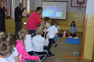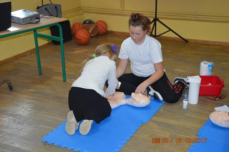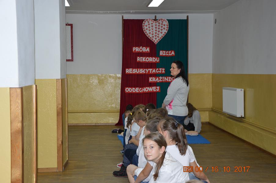 Już po raz trzeci nasza szkoła przystąpiła do bicia rekordu w jednoczesnym wykonywaniu resuscytacji krążeniowo – oddechowej. Wydarzenie zostało zorganizowane przez Wielką Orkiestrę Świątecznej Pomocy w ramach obchodów Europejskiego Dnia Przywracania Czynności Serca, który jest obchodzony 16 października. Tego dnia, 30 uczniów z klas I – VI wzięło udział w trzydziestominutowej lekcji resuscytacji krążeniowo – oddechowej. Uczniowie pokazali, że dla nich pierwsza pomoc jest czymś naturalnym, a przyprowadzenie czynności ratujących życie nie jest trudne.