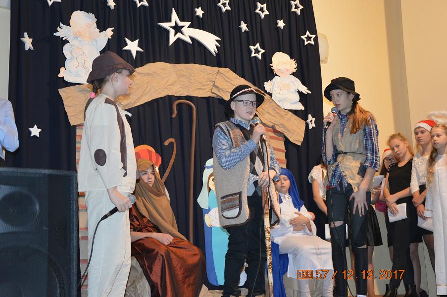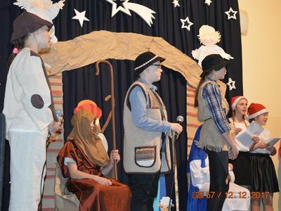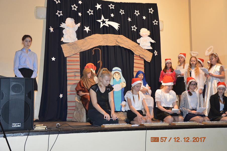 Jak co roku, uczniowie naszej szkoły przygotowali Jasełka, na które zostali zaproszeni mieszkańcy okolicznych wiosek. Sceny narodzin Bożego Dzieciątka, przeplatane pięknymi kolędami i pastorałkami, wprowadziły wszystkich w świąteczny nastrój. Po przedstawieniu, przybyli goście mogli zakupić bożonarodzeniowe dekoracje, sprzedawane przez uczniów Szkolnego Koła Wolontariatu.