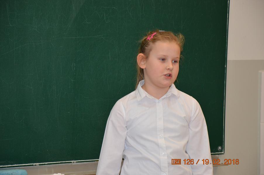 W poniedziałek 19 lutego odbył się Szkolny Konkurs Recytatorski, w którym startowali uczniowie klas I – VII. Tegoroczny konkurs, po raz pierwszy, był przeprowadzony w trzech kategoriach – I kategoria dla uczniów klas I – III, II kategoria dla uczniów klas IV – VI oraz III kategoria dla uczniów klasy VII. Wiersze, wybrane przez uczniów na konkurs, były różnorodne – od zabawnych po refleksyjne.