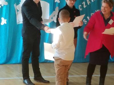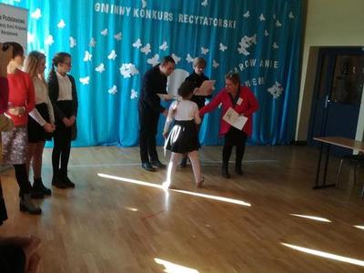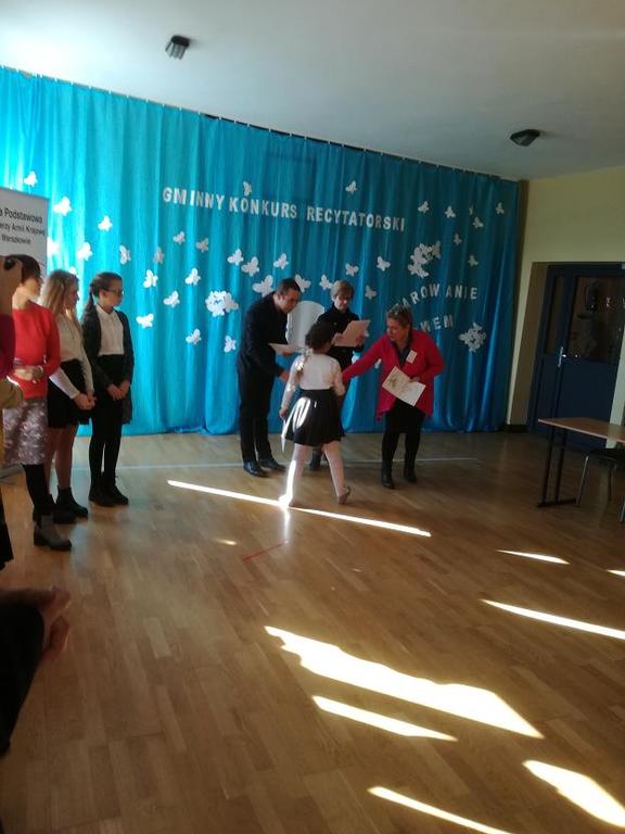 Amelka Gosławska oraz Dominik Krawczyk reprezentowali naszą szkołę na Gminnym Konkursie Recytatorskim ,,Czarowanie Słowem”, który odbył się w Szkole Podstawowej w Warszkowie. Nasi uczniowie stanęli w szranki z najlepszymi recytatorami Gminy Sławno. Dominik zajął III miejsce w kategorii klas IV – VI, natomiast Amelka zdobyła wyróżnienie w kategorii klas I – III.