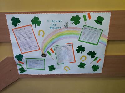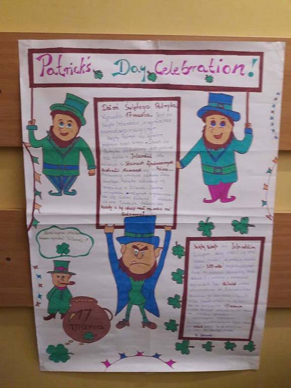 Dnia 17 marca obchodzony jest Dzień Św. Patryka. Jest to święto irlandzkie, o wymiarze narodowo - religijnym, jednak obecnie celebruje się je już na całym świecie. Także uczniowie naszej szkoły postanowili uczcić ten wyjątkowy dzień, próbując swoich sił w konkursie na najbardziej wymyślny kapelusz irlandzkiego skrzata. Dzięki plakatom swoich kolegów i koleżanek, wszyscy mogliśmy także zapoznać się z legendami o Św. Patryku, symbolami oraz ciekawostkami związanymi z tym świętem. Następne obchody już za rok!