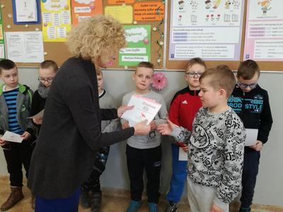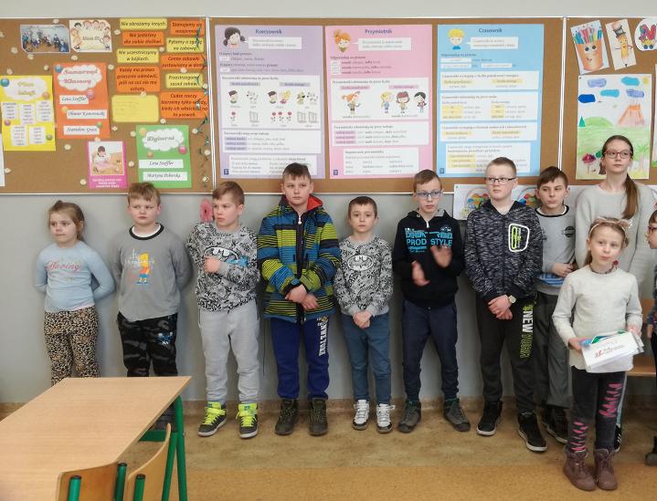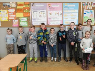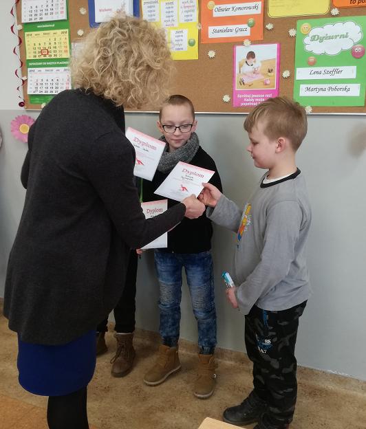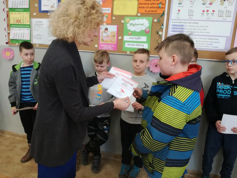 W szkole odbyło się podsumowanie konkursów szkolnych i pozaszkolnych , w których udział wzięli nasi uczniowie. Pani dyrektor Małgorzata Sałusz podziękowała wszystkim za udział w konkursach oraz reprezentowanie naszej szkoły w konkursach na szczeblu gminnym i powiatowym: w Szkolnym Konkursie Matematycznym ,,Mistrz liczby pi”, Międzynarodowym Konkursie Kangur Matematyczny, Gminnym oraz Powiatowym Przeglądzie Teatralnym ARA, Konkursie na kapelusz irlandzkiego skrzata.