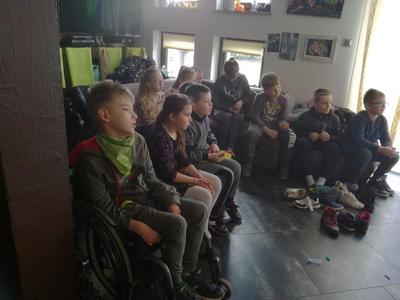 Dnia 5 kwietnia 2018r. nasza klasa III wybrała się w odwiedziny do naszego kolegi Maksa. Po pierwszej lekcji pani wychowawczyni powiedziała, że ma dla nas niespodziankę. Bardzo byliśmy ciekawi, o co chodzi. Niespodzianką okazał się wyjazd do Maksa. Ucieszyliśmy się bardzo, bo dawno nie widzieliśmy naszego kolegi. Po przerwie wszyscy staliśmy gotowi do wyjścia. Zajęliśmy miejsca w autobusie i ruszyliśmy do Sławna.
