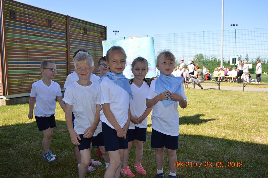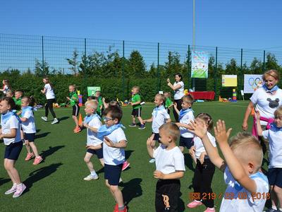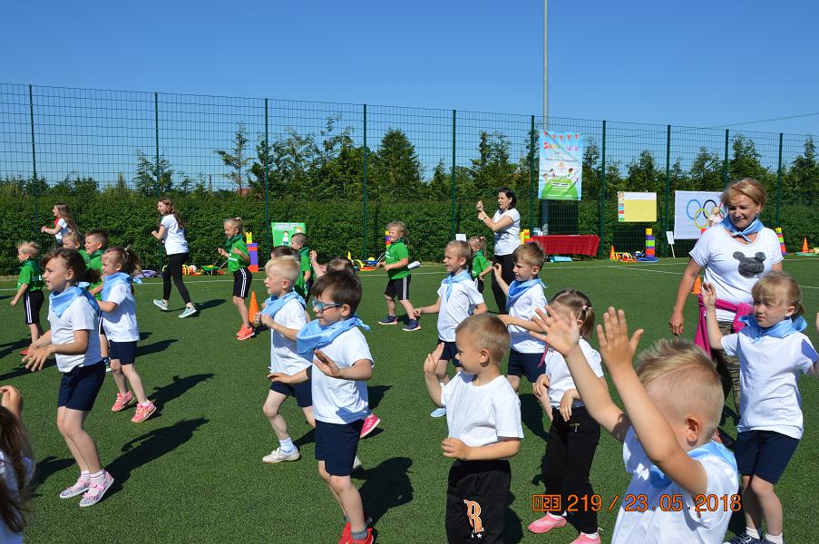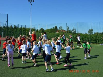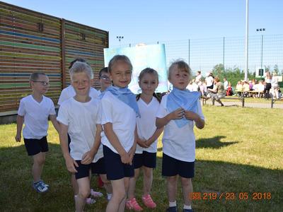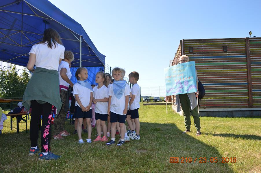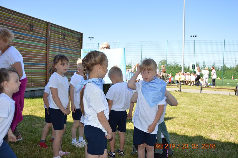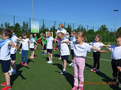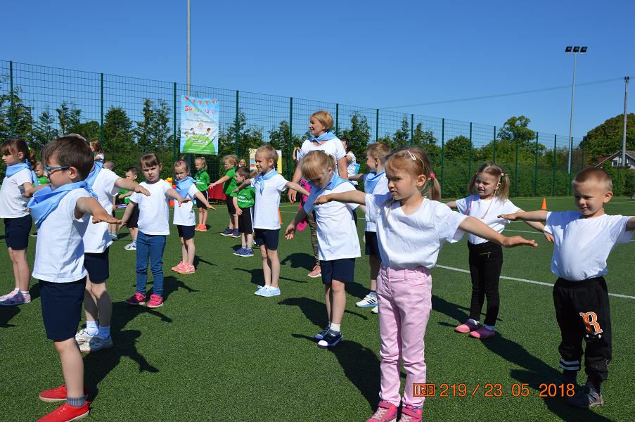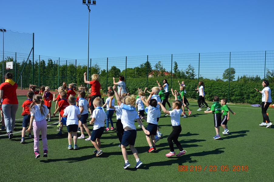Przedszkolaki wykazały się sprawnością fizyczną i wielką dokładnością w pokonywaniu wszystkich sportowych zadań. Naszą koronną konkurencją były biegi sprinterskie, w których zwyciężczynią była Julka, a Jarek zajął drugie miejsce. Po podsumowaniu wszystkich wyników przedszkolaki z naszej szkoły zajęły V miejsce.