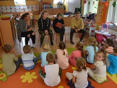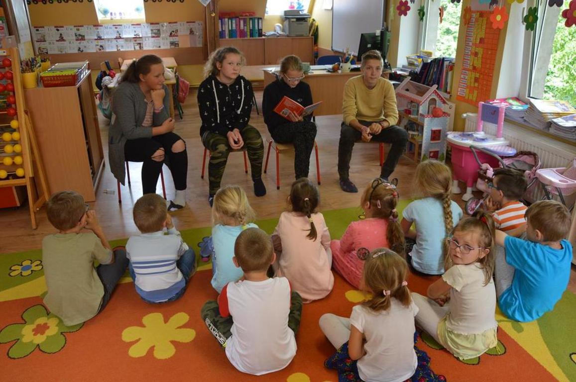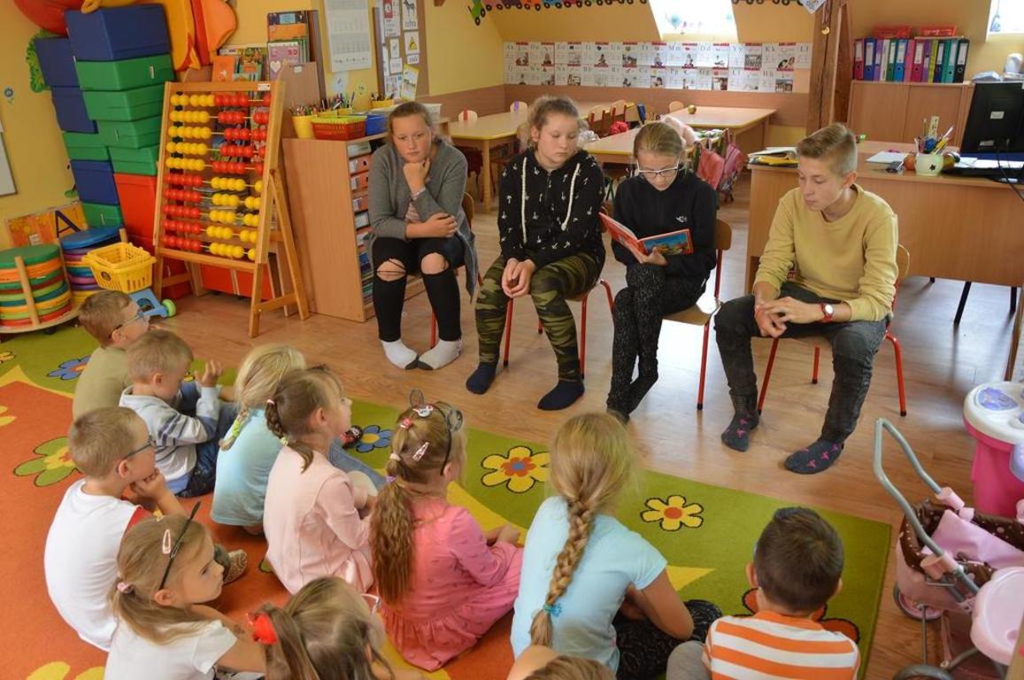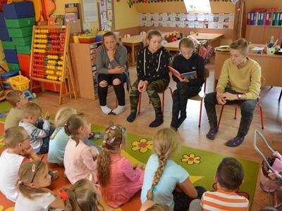 Dnia 14 czerwca 2018r. uczniowie należący do Szkolnego Koła Wolontariatu czytali bajki naszym najmłodszym uczniom - przedszkolakom. Dzieci chętnie słuchały starszych koleżanek i kolegów. Celem akcji było nie tylko propagowanie czytelnictwa wśród dzieci, ale również integrowanie uczniów klas starszych z przedszkolakami.