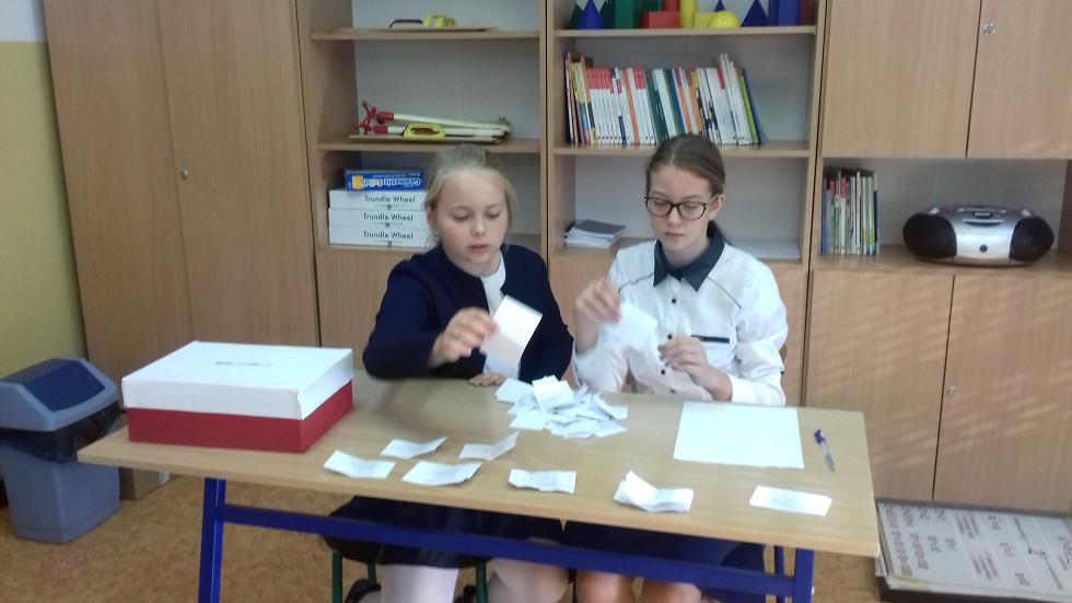 Dnia 21 września 2018r. odbyły się w naszej szkole wybory do Samorządu Uczniowskiego. Udział w głosowaniu wzięli uczniowie klas IV – VIII. Komisja w składzie: opiekun SU – Dorota Miszczyk oraz uczennice klasy VI – Emila Bejnerowicz i Marika Konat, po przeliczeniu głosów ogłosiła wyniki, które przedstawiały się następująco: