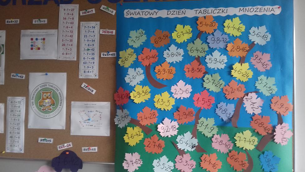 28 września 2018 roku nasza szkoła po raz kolejny uczestniczyła w VIII Światowym Dniu Tabliczki Mnożenia. Celem akcji jest propagowanie zabawowej formy uczenia się matematyki. Ma ona zachęcić do przypomnienia sobie tabliczki mnożenia w przyjemny, niecodzienny sposób. Przygotowania do Światowego Dnia Tabliczki Mnożenia trwały kilka dni. Uczniowie od poniedziałku dekorowali klasy, szkolne korytarze i przygotowywali plakaty. Podczas przerw przepytywali siebie nawzajem, przepytywali również dorosłych pracowników szkoły. Na lekcjach matematyki aktywnie przypominali sobie tabliczkę mnożenia i dzielenia. W piątek wszyscy uczniowie mogli przystąpić do egzaminu, aby zdobyć Certyfikat Experta Tabliczki Mnożenia. Komisję egzaminacyjną tworzyli uczniowie, którzy bezbłędnie znają tabliczkę mnożenia i dzielenia: Maja Szymańska, Marcel Siwiuk, Hubert Kosikowski, Dominik Krawczyk, Marika Konat, Emila Bejnerowicz, Tristan Pobiehuszko, Hanna Mojsym, Julia Wojciechowska i Szymon Nagórny. Pozostaje mieć nadzieję, że oprócz świetnej zabawy poprawiła się znajomość tabliczki mnożenia u niektórych uczniów.