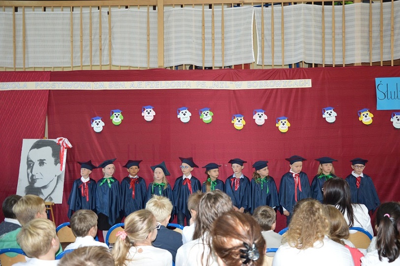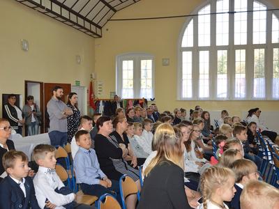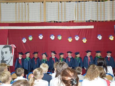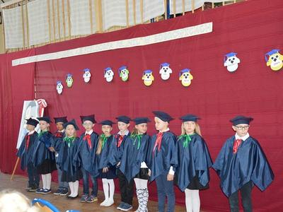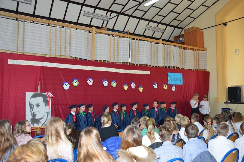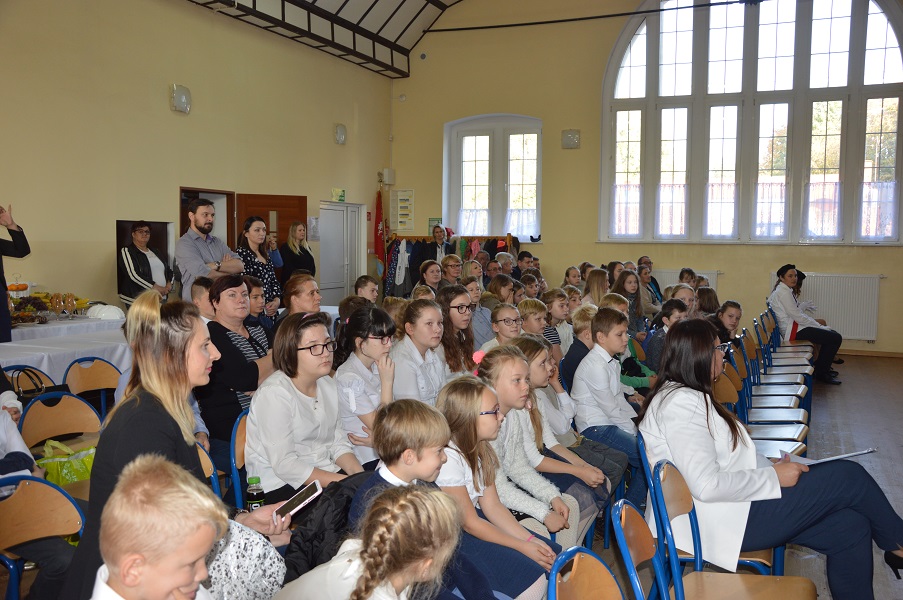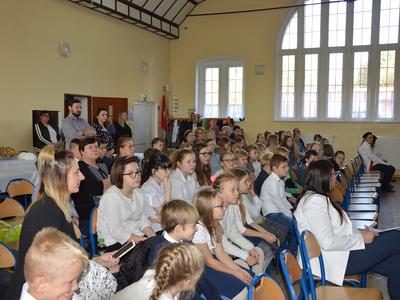 17 października 2018 roku był ważnym dniem w życiu pierwszoklasistów naszej szkoły. Tego dnia, w obecności zaproszonych gości, swoich najbliższych oraz całej społeczności uczniowskiej mieli swoje święto – Ślubowanie klasy I. Po zaprezentowaniu swoich umiejętności, pierwszoklasiści ślubowali wobec wszystkich zebranych, że będą dobrymi Polakami, będą dbać o dobre imię klasy i szkoły, będą kochać swoją Ojczyznę, będą dobrymi kolegami oraz będą swoim zachowaniem i nauką sprawiać radość rodzicom i nauczycielom. Swoją przysięgę złożyli również rodzice uczniów, którzy ślubowali między innymi, że będą słuchać tego, co mówi dziecko, będą traktować swoje dzieci jak unikalny dar oraz doceniać w dzieciach, to co najlepsze. Po oby przysięgach nastąpiła ceremonia pasowania przez panią dyrektor, pierwszaków na uczniów naszej szkoły. Na pamiątkę uroczystości każde dziecko złożyło swój podpis w szkolnej kronice. Na uczniów czekały liczne niespodzianki – wspaniałe prezenty od gości oraz poczęstunek przygotowany przez rodziców.