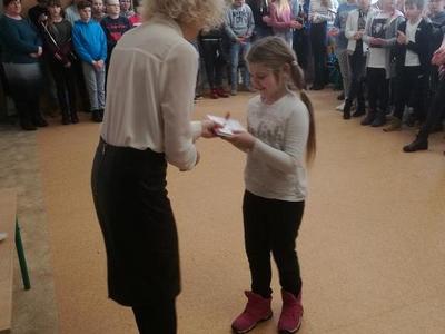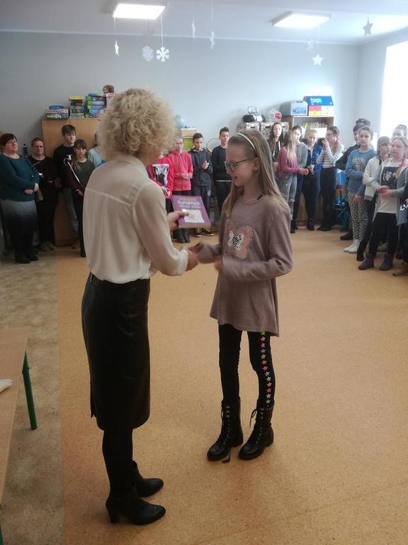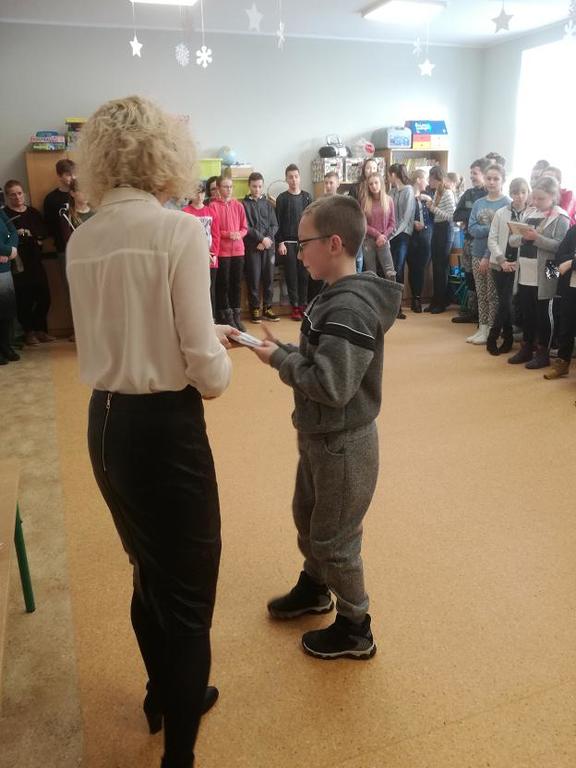 W ostatnim dniu przed rozpoczynającym się feriami, w szkole została podsumowana praca uczniów w I semestrze. Pani dyrektor złożyła gratulację wyróżnionym uczniom oraz wszystkim życzyła bezpiecznych ferii.
