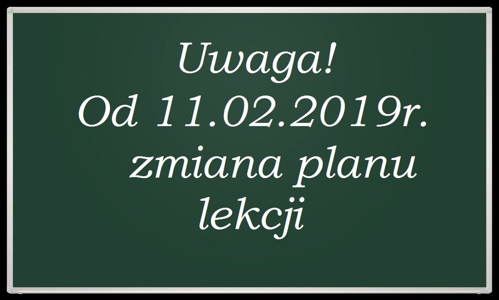 Zmiany w planie lekcji Informujemy, że od dnia 11 lutego 2019r. nastąpi zmiana w planie lekcji. Plan lekcji dostępny jest na stronie w zakładce PLANY LEKCJI. Prosimy o sprawdzenie! Zdjęcia Zobacz również Bal karnawałowy List Zachodniopomorskiego Kuratora Oświaty z okazji... Podsumowanie I semestru Zmiany w planie lekcji Rekrutacja na rok szkolny 2019/2020 Dzień kota 05 lutego 2019 Aktualności Wydrukuj Udostępnij Wyświetlono: 2395