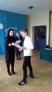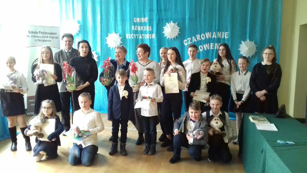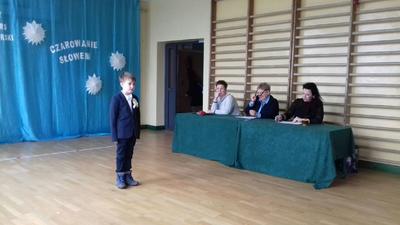 Laureaci Szkolnego Konkursu Recytatorskiego rezprezentowali naszą szkołę na konkursie gminnym w Szkole Podstawowej w Warszkowie. Jury przyznało Dominkowi Krawczykowi wyróżnienie, a Tristan Pobiehuszko otrzymał III miejsce i będzie przedstawicielem naszej szkoły w powiatowym etapie konkursu. Gratulujemy występów a Tristanowi życzymy zwycięstwa.