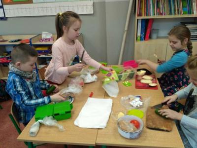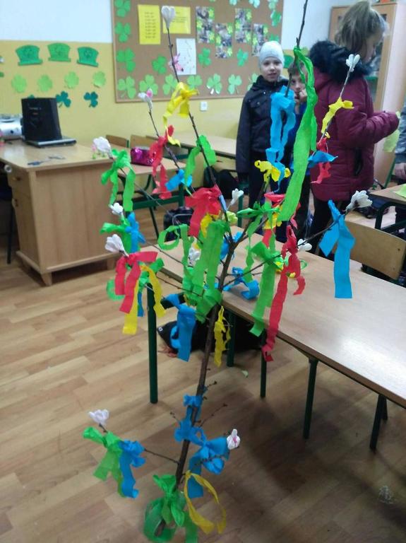 Pierwszego Dnia Wiosny uczniowie klas I – IV wykonali gaik – symbol nadejścia wiosny, a dzieci z oddziału przedszkolnego posadziły cebulę. Wszyscy przemaszerowali w korowodzie po okolicy oznajmując nadejście wiosny. Nie zabrakło zdrowych sałatek i kanapek, które uczniowie wykonywali samodzielnie i zjedli ze smakiem.
