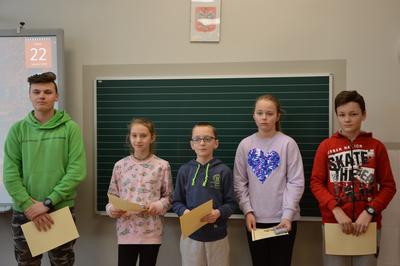 W marcu odbył się konkurs matematyczny, w którym udział wzięli wszyscy uczniowie klas IV-VIII. Konkurs polegał na rozwiązaniu zagadek matematycznych. W każdej z klas został wyłoniony Mistrz Klasowy. Wyniki przedstawiały się następująco: