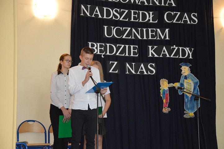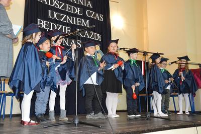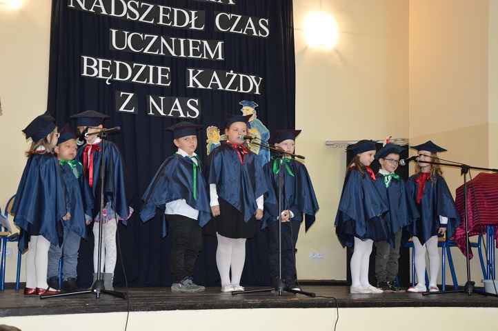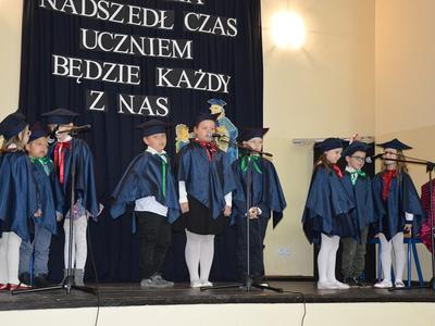 Zanim pierwszoklasiści zostali przyjęci do grona społeczności szkolnej musieli przedstawić to, czego już się w szkole nauczyli. Gotowi, odświętnie ubrani i bardzo przejęci przystąpili do zaprezentowania swoich umiejętności. Zadaniem uczniów było zaśpiewanie piosenek, recytowanie wierszy oraz zaprezentowanie wiedzy dotyczącej znajomości naszego kraju.
