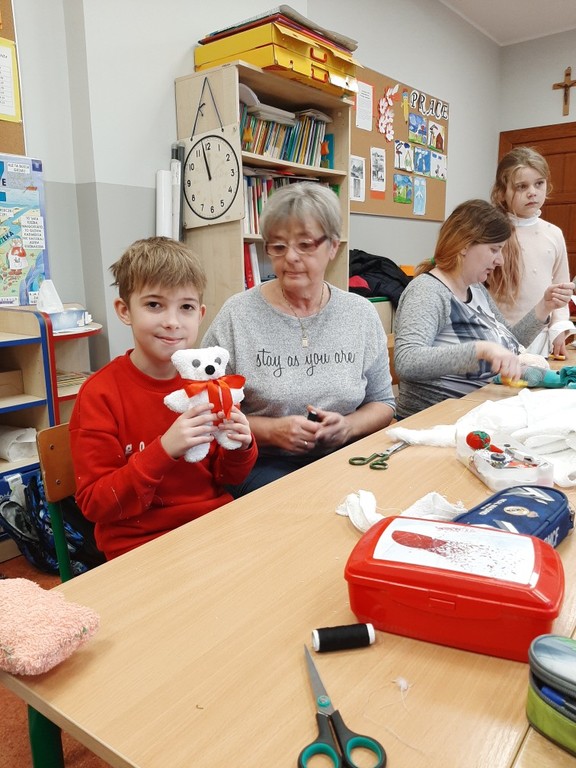Do klasy III przyjechał leśnik, który przypomniał dzieciom historię powstania zabawki. Trzecioklasiści wraz z rodzicami szyli misie maskotki.