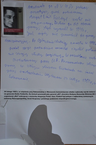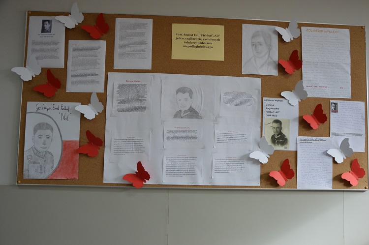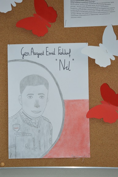 1 marca w całej Polsce obchodzony jest Narodowy Dzień Żołnierzy Wyklętych. Uczniowie naszej szkoły uczcili bohaterów poprzez samodzielne wykonanie prac plastycznych o tematyce historycznej związanych z działalnością Żołnierzy Niezłomnych. W szczególny sposób uczczono również patrona naszej szkoły gen. Augusta Emila Fieldorfa ps. „NIL”. Z prac uczniów w szkole została wykonana galeria.