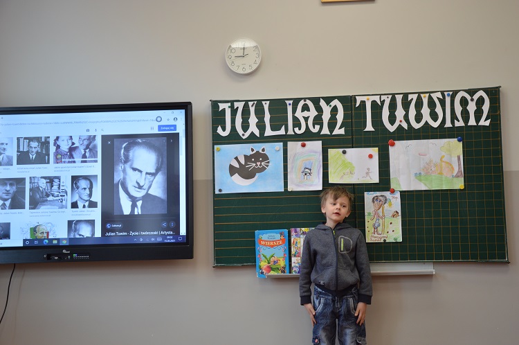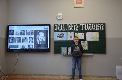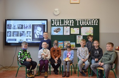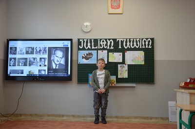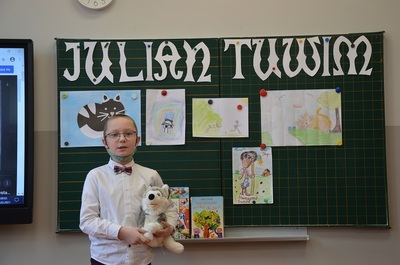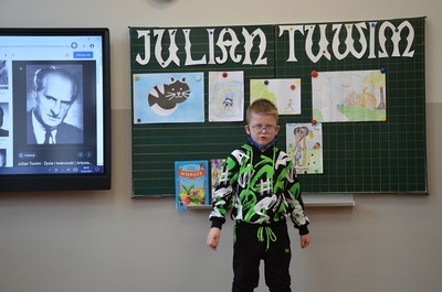 Uczniowie klasy I przygotowali prezentację recytacji wierszy Juliana Tuwima, który samodzielnie wybrali. Wykonali też prace plastyczne do wiersza. Natomiast trzecioklasiści zmagali się z twórczością Tuwima w konkursie czytelniczym. I miejsce zajęcła Oliwia Siarnecka, II był Antoni Korabowicz, a III lokata przypadła Martynie Prylewskiej.