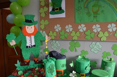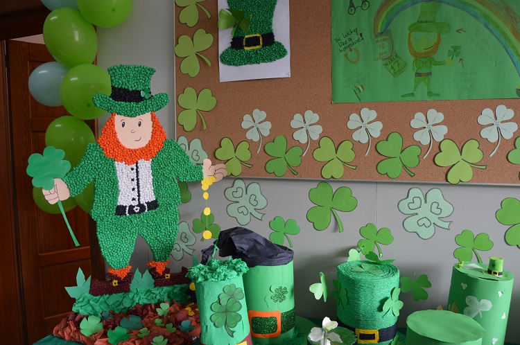 W naszej szkole był obchodzony Dzień Świętego Patryka, który przypada na dzień 17 września. Święto Patryka obchodzone jest szczególnie w Irlandii. Najważniejszą tradycją jego obchodów jest noszenie ubrań w kolorze zielonym oraz liczne pokazy irlandzkich tańców i muzyki. Tego dnia, uczniowie nawiązując do tego irlandzkiego święta, byli ubrani na zielono. Na korytarzu szkolnym ściany zostały przyozdobione w zielone koniczyny, a z prac uczniów powstała galeria dotycząca św. Patryka. Atrakcją dla dzieci z najmłodszych klas, była możliwość wykonania pamiątkowego zdjęcia w makiecie postaci irlandzkiego skrzata Leprechauna. W szkole został zorganizowany konkurs dla uczniów klas I – III na wykonanie najbardziej kreatywnego kapelusza skrzata Leprechauna. Jednocześnie uczniowie klas starszych, mieli za zadanie wykonać postać skrzata w formie płaskiej lub przestrzennej. Wszystkie prace były wykonane w sposób kreatywny i staranny. Jury miało nie lada wyzwanie, aby wyłonić trzy najpiękniejsze prace.