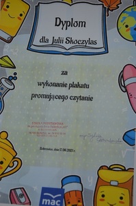 Pod takim tytułem odbył się konkurs plastyczny w bibliotece szkolnej. Prace promujące czytanie książek z naszej biblioteki przygotowały uczennice klasy III.