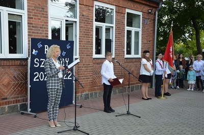 Na początku uroczystości dyrektor szkoły Pani Małgorzata Sałusz przypomniała o wydarzeniach września 1939 roku, a pamięć tych, którzy walczyli o wolność naszej Ojczyzny została uczczona minutą ciszy. Pani dyrektor przywitała uczniów, nauczycieli, pracowników szkoły oraz rodziców, przedstawiła kadrę pedagogiczną i pracowników szkoły oraz omówiła program szczepień uczniów od 12. roku życia. Po uroczystości uczniowie udali się do swoich klas na spotkania z wychowawcami.