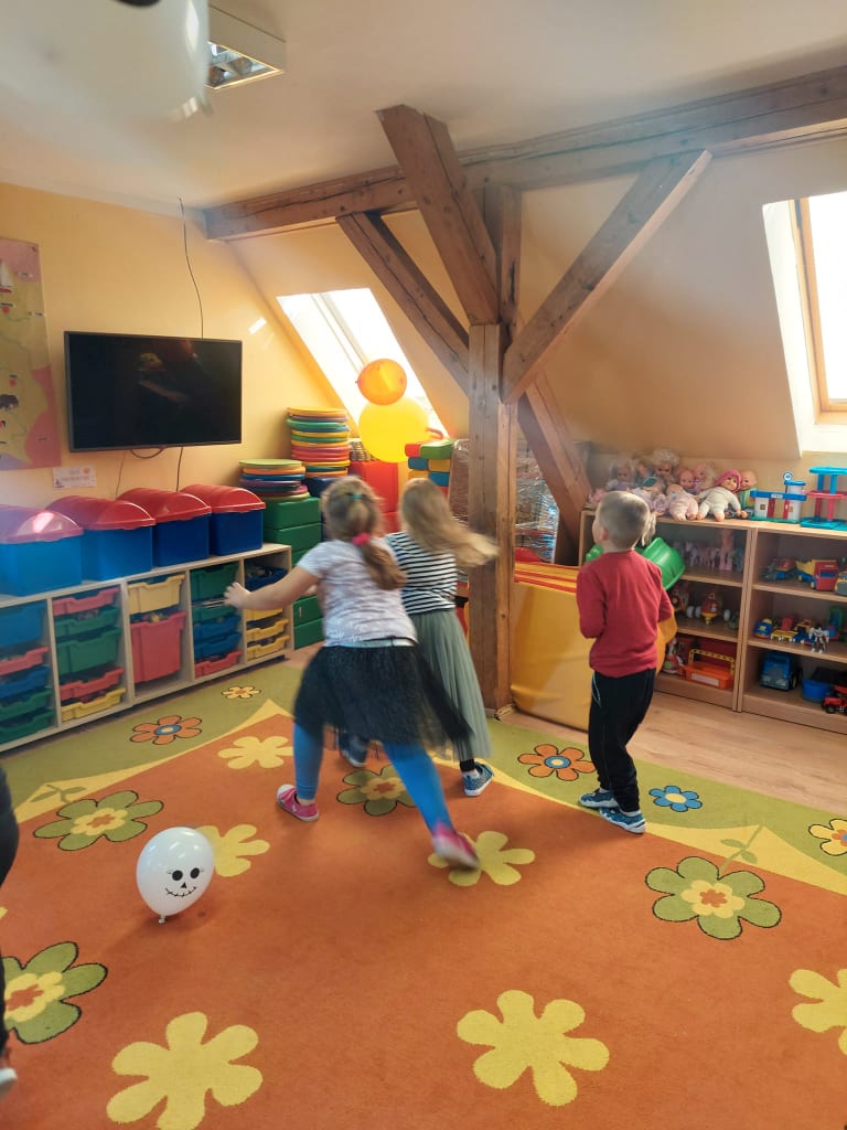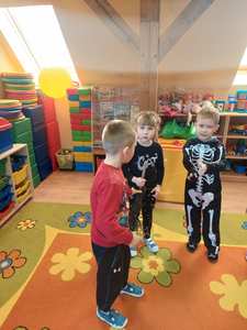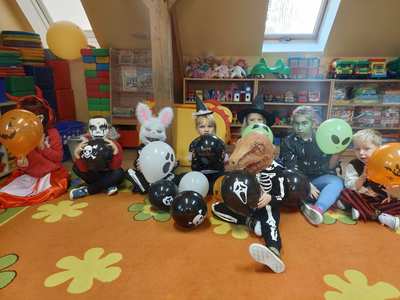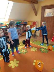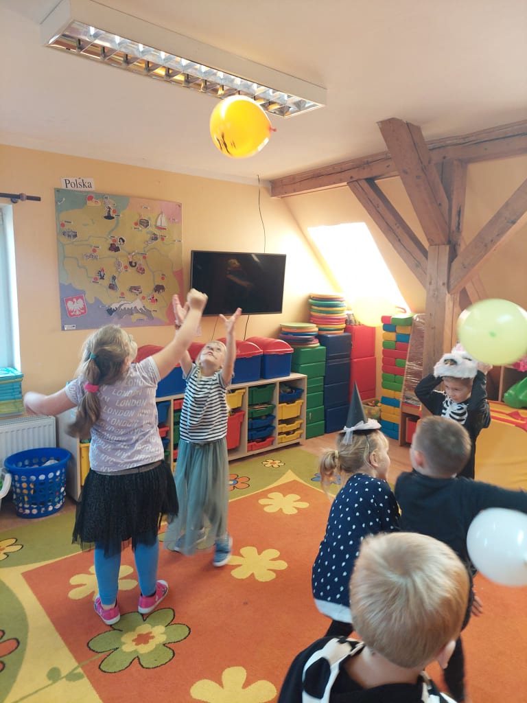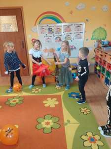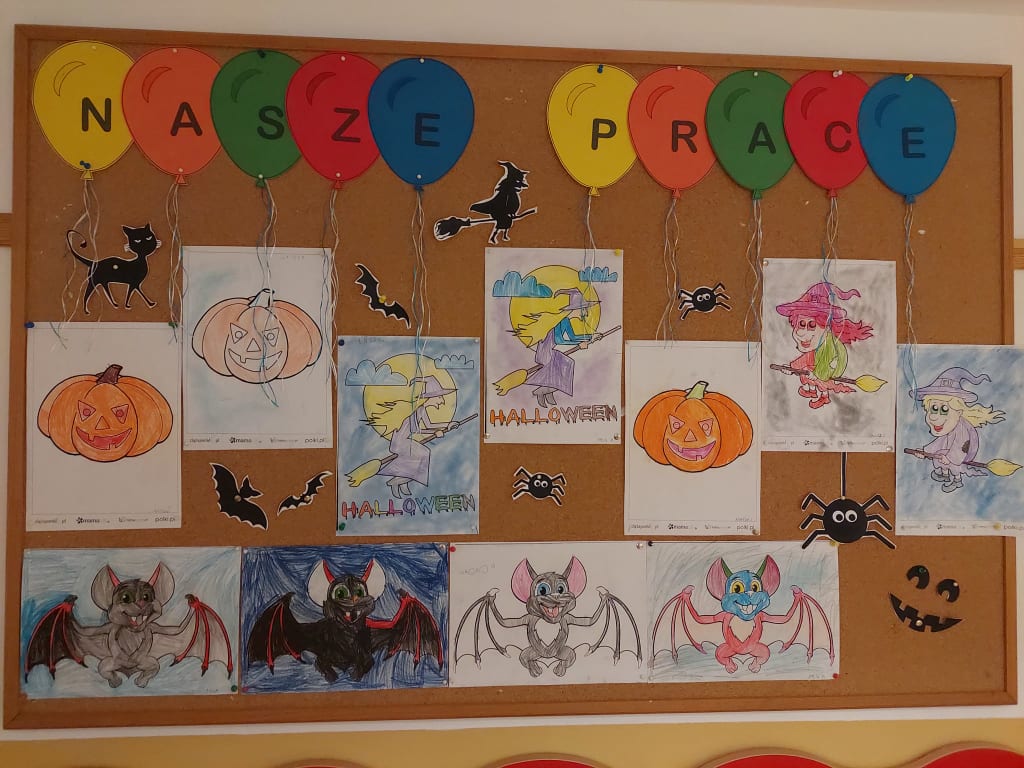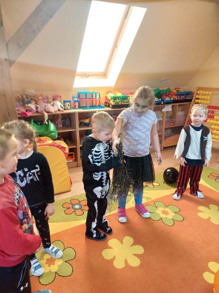 29 października 2021r. dzieci z oddziału przedszkolnego naszej szkoły obchodziły ,,Halloween na wesoło – cukierek albo psikus”. Rodzice zadbali o halloweenowe stroje dla swoich pociech. W przedszkolu można było spotkać czarownice, duszki i wampiry. Dzieci uczestniczyły w wielu zabawach: taniec na miotle, okrzyk najstraszniejszego ducha, nauka rymowanki ,,My jesteśmy straszne zmory” czy zabawie w przeprawę przez ,,bagno”, co wywołało wiele radości i uśmiechu na twarzach.