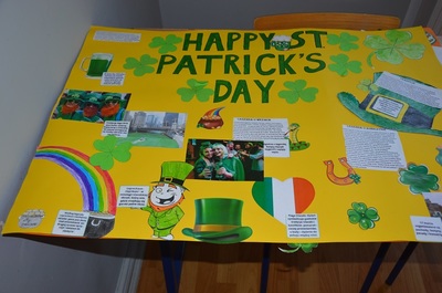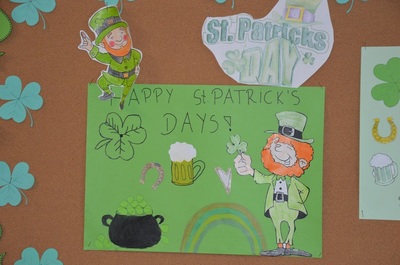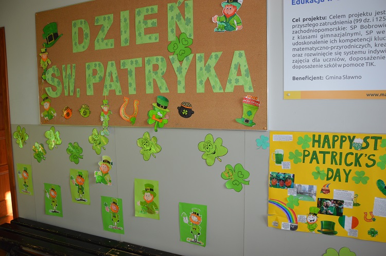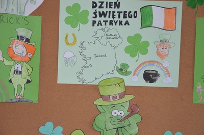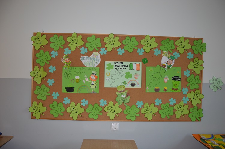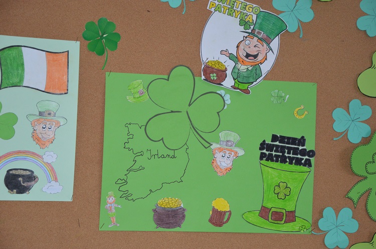 Klasa VII redagowała treści na gazetki ścienne, a klasa V zajęła się przystrajaniem szkolnych korytarzy. Dzieci z klas I – III i oddziału przedszkolnego też miały swój udział w tym święcie. Wykonały one przepiękne rysunki Leprechauna – irlandzkiego skrzata.