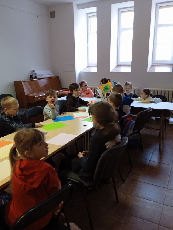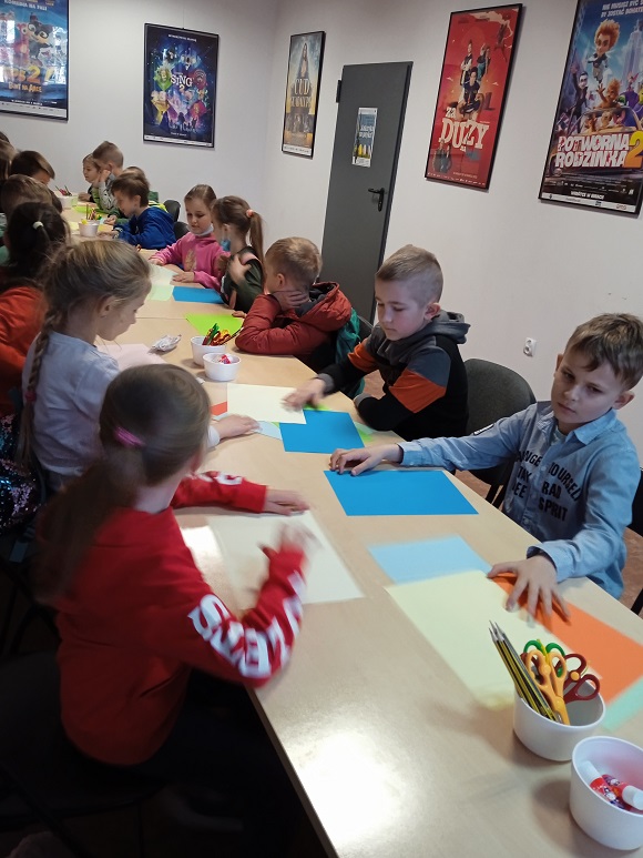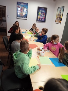 Pierwszego Dnia Wiosny klasy I-III pojechały do Sławieńskiego Domu Kultury na film pt. ,,Potworna rodzinak2”. Po seansie uczniowie uczestniczyli w wiosennych warsztatach plastycznych ,,Kukuryku na patyku”, na których dzieci zrobiły kolorowe wiatraczki.