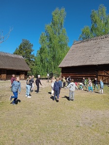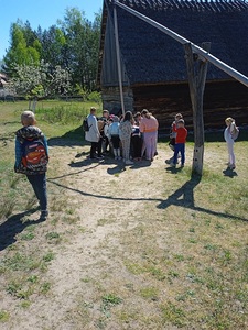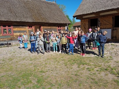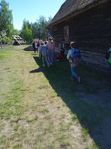 Pierwszym punktem wycieczki było Muzeum – Kaszubski Park Etnograficzny we Wdzydzach Kiszewskich. W skansenie uczniowie mogli zapoznać się z dawnym życiem na wsi kaszubskiej. Oglądali zabudowania, wyposażenie chat, przedmioty codziennego użytku. Dużą atrakcją okazała się lekcja w dawnej szkole, gdzie dzieci poznały wyposażenie klasy i każdego ucznia. Próbowały pisać gęsim piórem, co okazało się nie takie łatwe. Uczniowie dowiedzieli się także, jak wyglądały stare zabawy i zabawki. Mogli rozegrać grę w dwa ognie szmacianą piłką, próbowali chodzić na szczudłach, bawili się drewnianymi zabawkami.