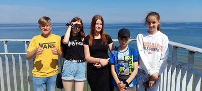 Dnia 9 czerwca 2022r. uczniowie klas IV - VIII naszej szkoły wybrali się na wycieczkę do Trzęsacza i Międzyzdrojów zorganizowaną w ramach Przedsięwzięcia MInistra Edukacji i Nauki ,,Poznaj Polskę". Zwiedzili Muzeum Multimedialne w Trzęsaczu, obeejrzeli ruiny kościoła na klifie i podeptali 15. południk wyznaczający czas środkowoeuropejski. W Międzyzdrojach z zachwytem oglądali figury woskowe znanych postaci, ciekawe okazy ryb w oceanarium i przykładali swoje dłonie do dłoni gwiazd na promenadzie.