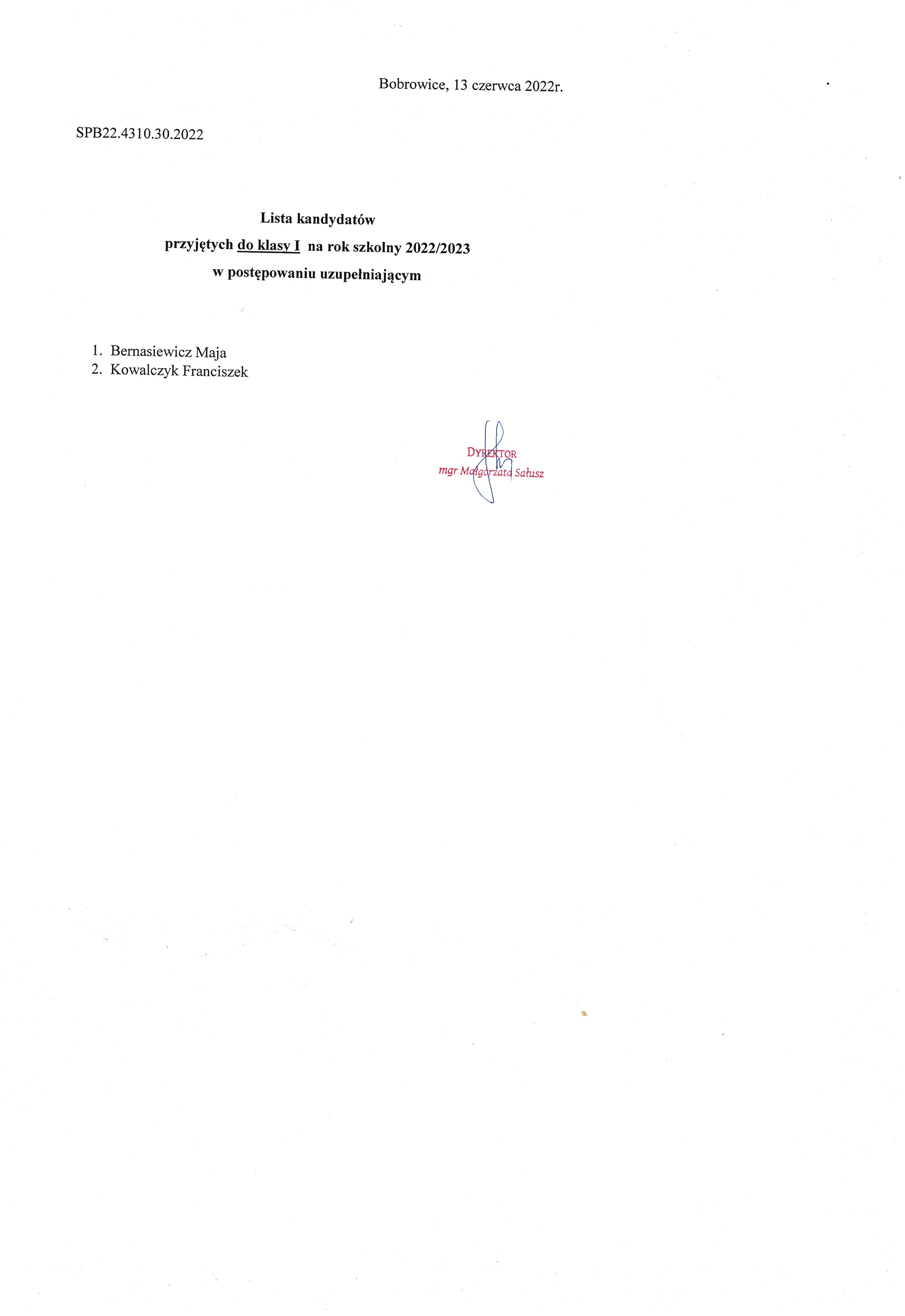 Lista kandydatów przyjętych do klasy I w postępowaniu uzupełniającym Zdjęcia Załączniki Lista kandydatów przyjętych do klasy I na rok szkolny 2022/2023 w postępowaniu uzupełniającym [399.05 kB] Zobacz również Dzień Dobrych Uczynków Lista kandydatów zakwalifikowanych do klasy I... Wycieczka klas IV - VIII Lista kandydatów przyjętych do klasy I w postępowaniu... Lista kandydatów przyjętych do oddziału przedszkolnego... Organizacja zakończenia roku szkolnego 2021/2022 13 czerwca 2022 Aktualności Wydrukuj Udostępnij Wyświetlono: 155