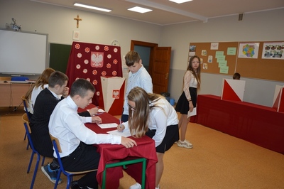 Z okazji Międzynarodowego Dnia Demokracji, obchodzonego 15 września w naszej szkole odbyły się wybory do Samorządu Uczniowskiego. W związku z tym wydarzeniem uczniowie klas 4-8 byli ubrani w stroje galowe, które miały podkreślić wyjątkowość sytuacji. Ważnym punktem tego dnia była możliwość poznania przebiegu prawdziwych wyborów przeprowadzanych wg określonych zasad obowiązujących w Polsce. Oprócz tego uczniowie klas starszych sami mogli uczestniczyć w wyborach i zdecydować do kogo powędruje ich głos.