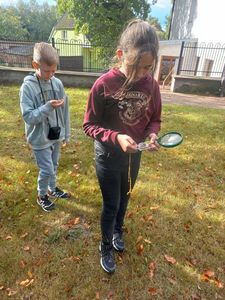 Lekcje w terenie są doskonałą formą poznawania tajników przyrody. Są źródłem wiedzy o otaczającym nas środowisku, a także okazją do zdobywania praktycznych umiejętności. 20 września uczniowie klasy IV zaopatrzeni w przyrządy i pomoce przyrodnika wyruszyli na zajęcia w teren. Prowadzili obserwacje, które są podstawowym sposobem poznawania przyrody oraz kształcili umiejętność posługiwania się kompasem.