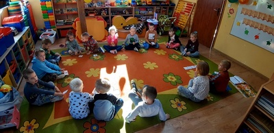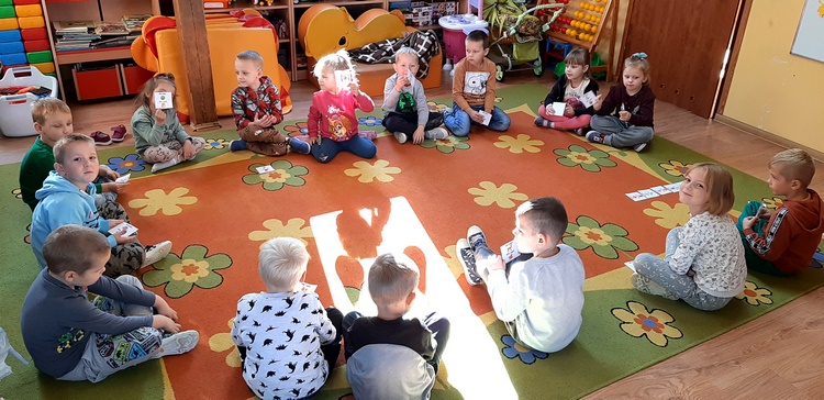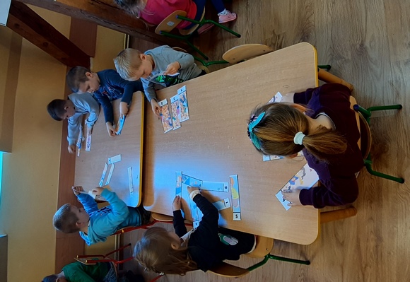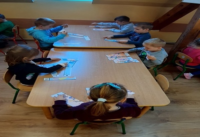 Dnia 23 września dzieci z oddziału przedszkolnego przywitały jesień. W tym dniu przedszkolaki grały wspólnie w gry o tematyce jesiennej. Układały puzzle ilustrujące przywitaną porę roku. Na podsumowanie dnia wykonały pracę plastyczną.