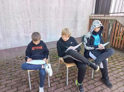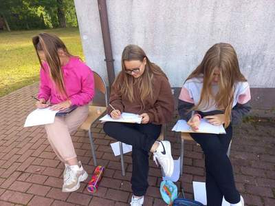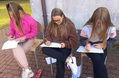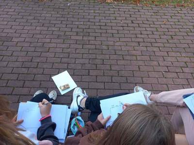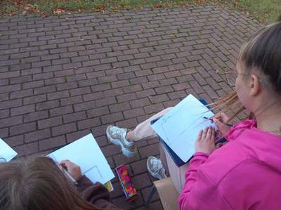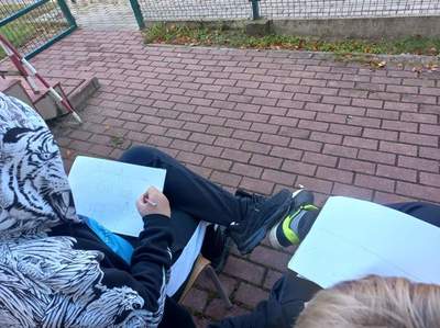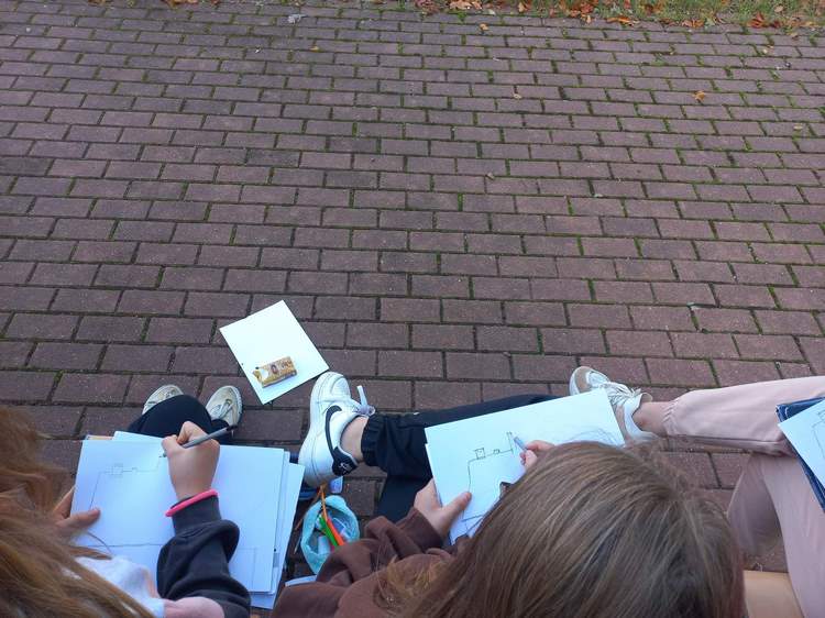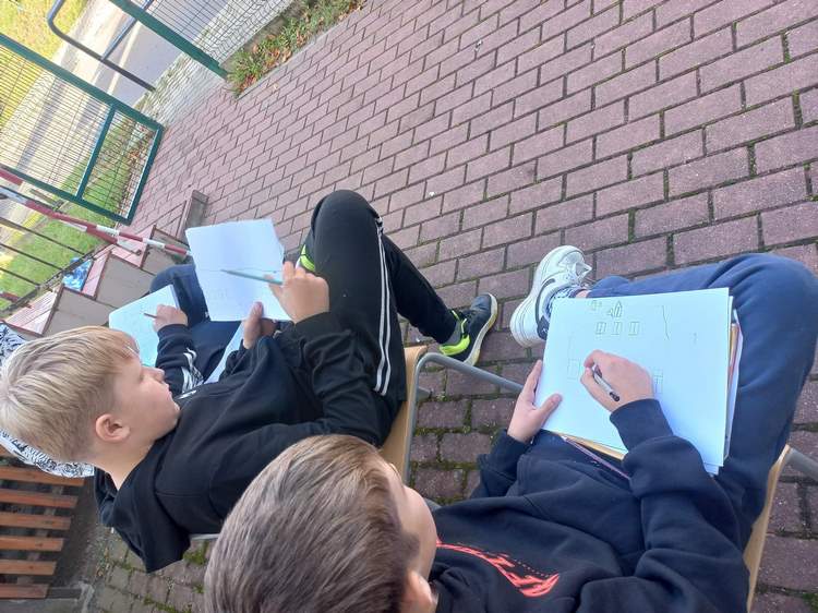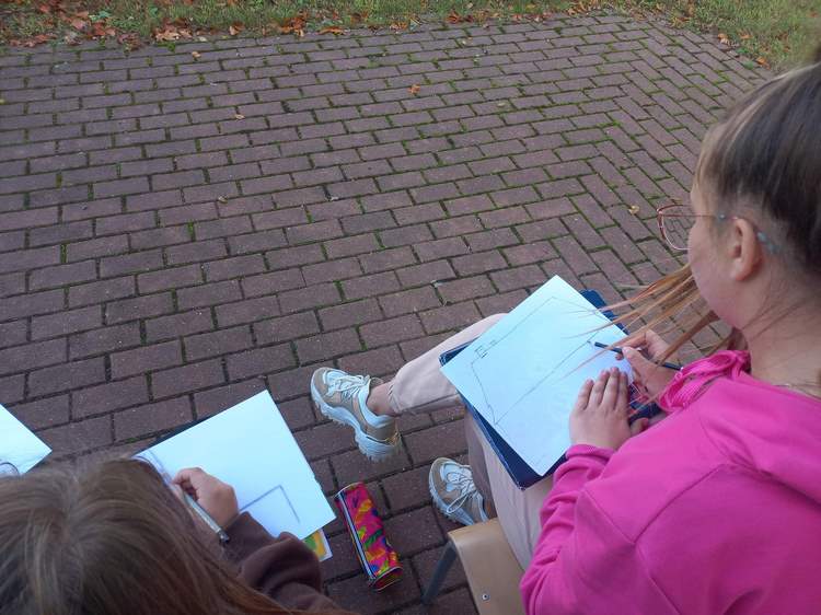 Uczniowie klasy VI korzystając z pięknej, jesiennej pogody wzięli udział w lekcji plenerowej. Celem lekcji było naszkicowanie budynku szkoły. Uczniowie bardzo chętnie przystąpili do pracy. Zajęcia przebiegły w bardzo miłej atmosferze. Wszyscy w skupieniu tworzyli swoje dzieła, starając się możliwie dokładnie odwzorować budynek naszej szkoły. W efekcie powstały bardzo ciekawe prace..