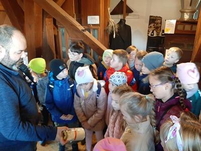 Wiele ciekawych przedmiotów widzieli uczniowie klas I-III w starym młynie w Naćmierzu. Przewodnik opowiadał również, jak z ziarna powstawała mąka. Rozumienie tego procesu ułatwiały oryginalne sprzęty. Potem spacer po plaży w Jarosławcu był miłym relaksem, a jednocześnie lekcją utrwalającą wiadomości o krajobrazie nadmorskim.