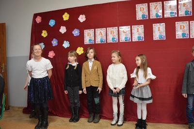 Uczniowie klas I-III recytowali wiersze, śpiewali piosenki oraz zaprezentowali swoje umiejętności taneczne. Po części oficjalnej nastąpił słodki poczęstunek przygotowany przez rodziców.