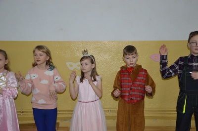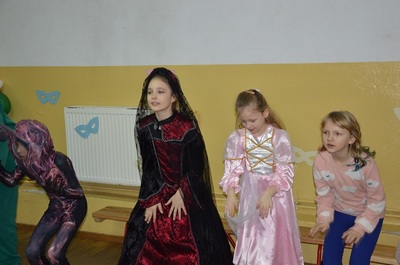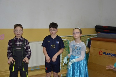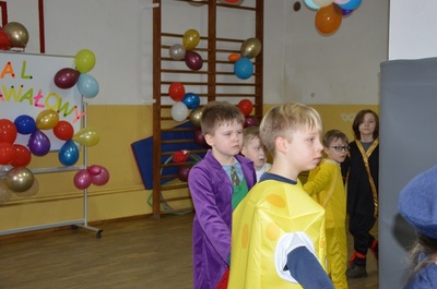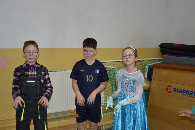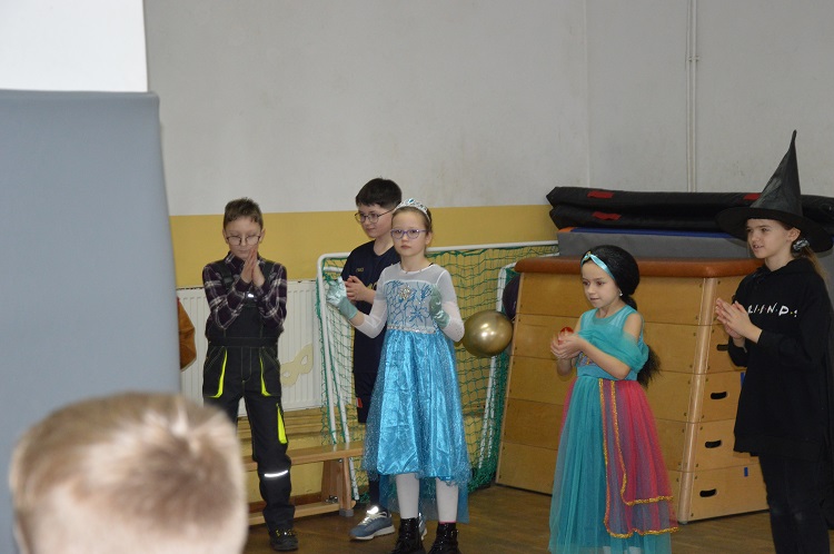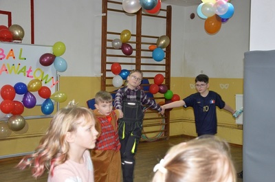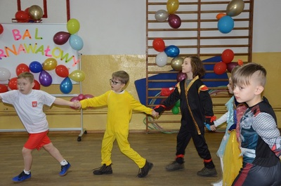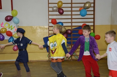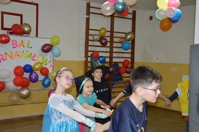 W ostatnim dniu nauki przed feriami zimowymi uczniowie klas I – III mieli bal karnawałowy. Zgodnie z tradycją dzieci przebrały się w stroje, dzięki czemu na sali pojawiły się różne postacie z bajek. Zabawę prowadzili uczniowie klasy VIII, którzy przygotowali ciekawe konkursy dla młodszych kolegów i koleżanek.