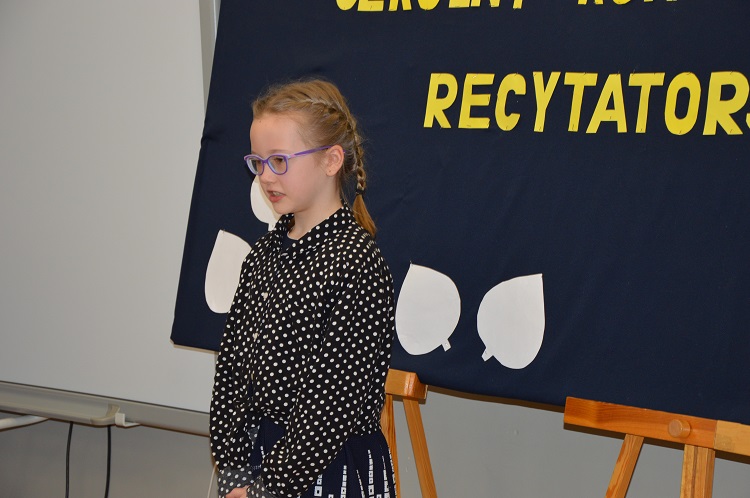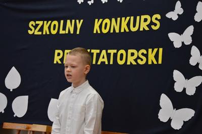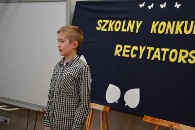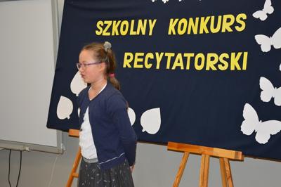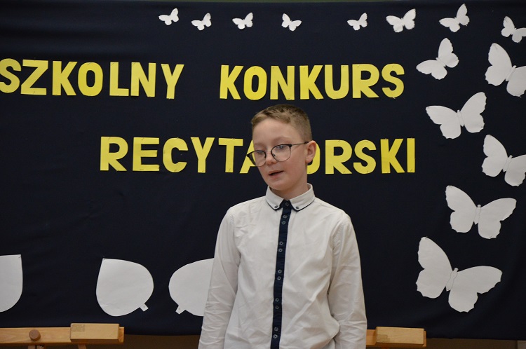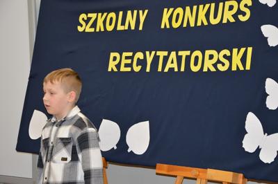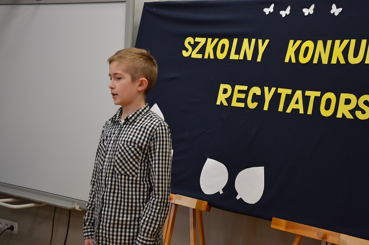 Dnia 10 marca odbył się a naszej szkole konkurs recytatorski. Uczniowie zaprezentowali ciekawe utwory polskich poetów. W kategorii klas I-III zwyciężyli: I miejsce- Jakub Kosikowski, II miejsce- Stanisław Grudniewski i III miejsce- Jacek Zagajewski. W II kategorii: I miejsce zajął Alan Krawczyk, II miejsce- Jarosław Jabłoński, a III – Julia Skoczylas i Marcelina Szelestowska. W III kategorii wygrała Martyna Poborska, a II miejsce zajęła Olivia Batorska.