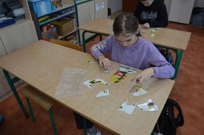 Dla uczniów klas I – III Mistrz Puzzli (uczniowie musieli w jak najkrótszym czasie ułożyć portret Leprechauna)