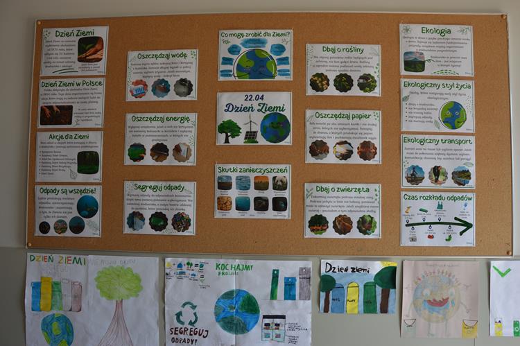Dzień Ziemi obchodzony 22 kwietnia to czas, kiedy ludzie na całym świecie łączą siły, aby uświadomić wszystkim, że wspaniałe dary przyrody trzeba wykorzystywać mądrze- tak, aby starczyło ich dla przyszłych pokoleń. Również w naszej szkole w obchody Dnia Ziemi włączyły się wszystkie klasy. Najpierw uczniowie obejrzeli prezentację o ekologii. Klasa III wraz z leśnikiem, na terenie naszej szkoły posadziła złotokapy i jarzębiny. Następnie klasy IV-VIII wzięły udział w prelekcji przedstawiciela Sanepidu na temat : „Zdrowie dla wszystkich”. Na koniec , w ramach V edycji akcji „Sprzątamy dla Polski”, uczniowie udali się na sprzątanie okolicy.